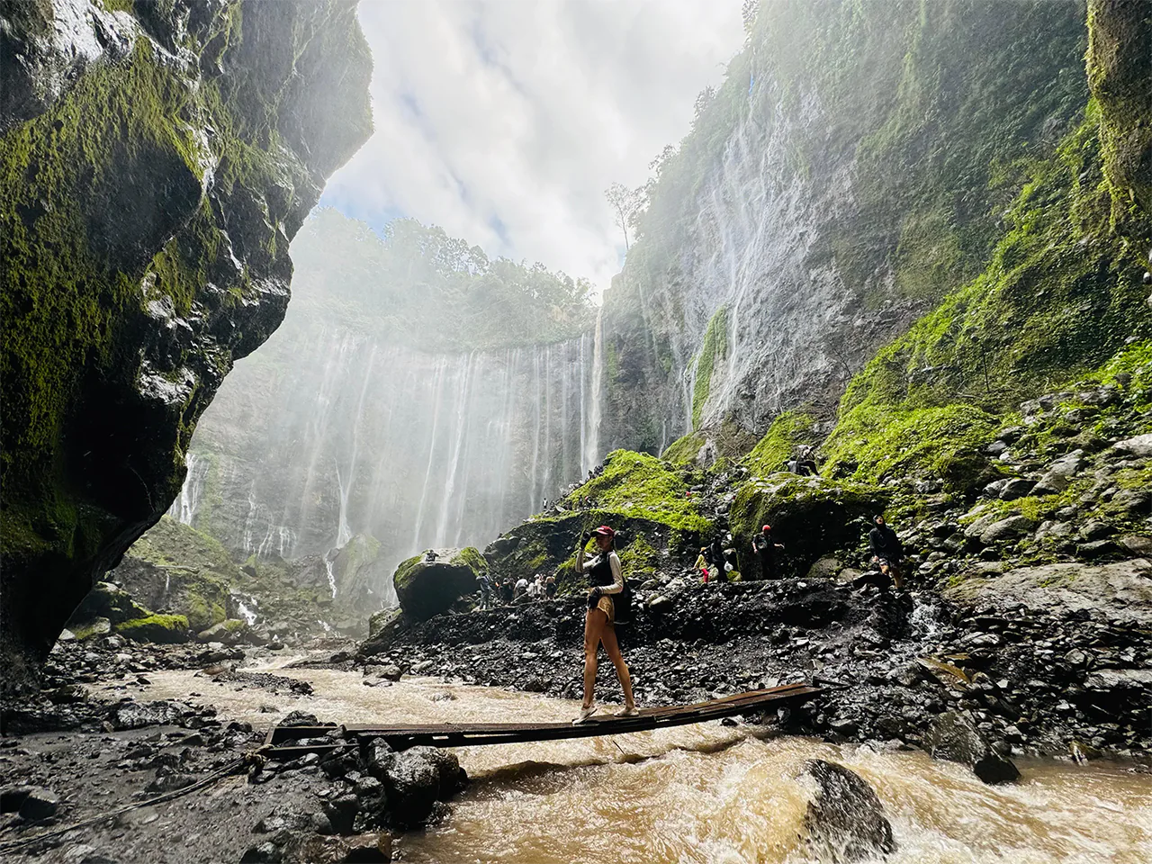 Around Tumpak Sewu, if you follow the ravine, along the way you will come across several other waterfalls. And at the end of the journey you will find another waterfall called Goa Tetes Waterfall. Goa Tetes Waterfall also has another beauty with the stalactite streaks formed from water droplets. Below there is also a natural swimming pool overlooking the waterfall, where you can bathe in the cool spring water.
